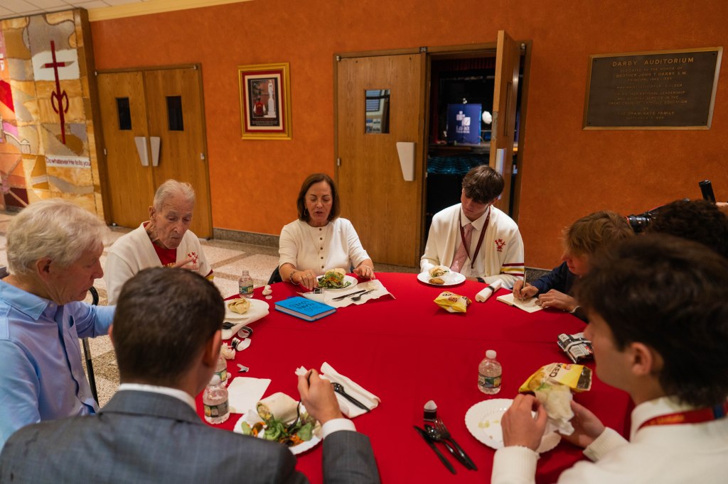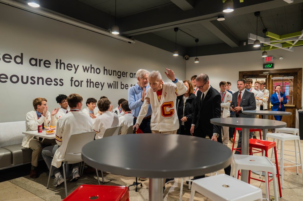 Grant Caiafa ’26 was one of the students who was lucky enough to join Al during his visit. “Meeting Al felt like stepping into history,” Grant shared. “Even at 100, he has an amazing memory and a real spark in him. You could tell how much Chaminade meant to him, and I feel incredibly lucky that I was able to hear his stories.”