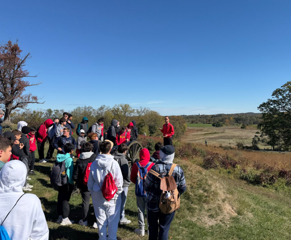 Throughout the day, the group followed the chronological order of the battle, following both the Union Line and the Confederate Line. Sophomore Chris Covelli ‘28 attended the trip, and detailed how the trip was specifically informative for him. He referred to Mr. DeMarco as “A Great Teacher”, and noted how he learned much more than he could by simply reading a textbook. Covelli noted how the chronological order of the tour helped him understand how the battle transpired, and how it served as the turning point for the war. In addition, he noted the success of the trip, and wished that the opportunity to return again was open to upperclassmen.